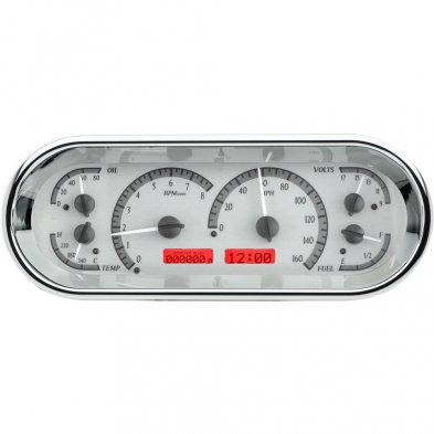 VHX-1018-S-R Universal Rounded Rectangle Gauge Kit in Silver Alloy with Red Illumination