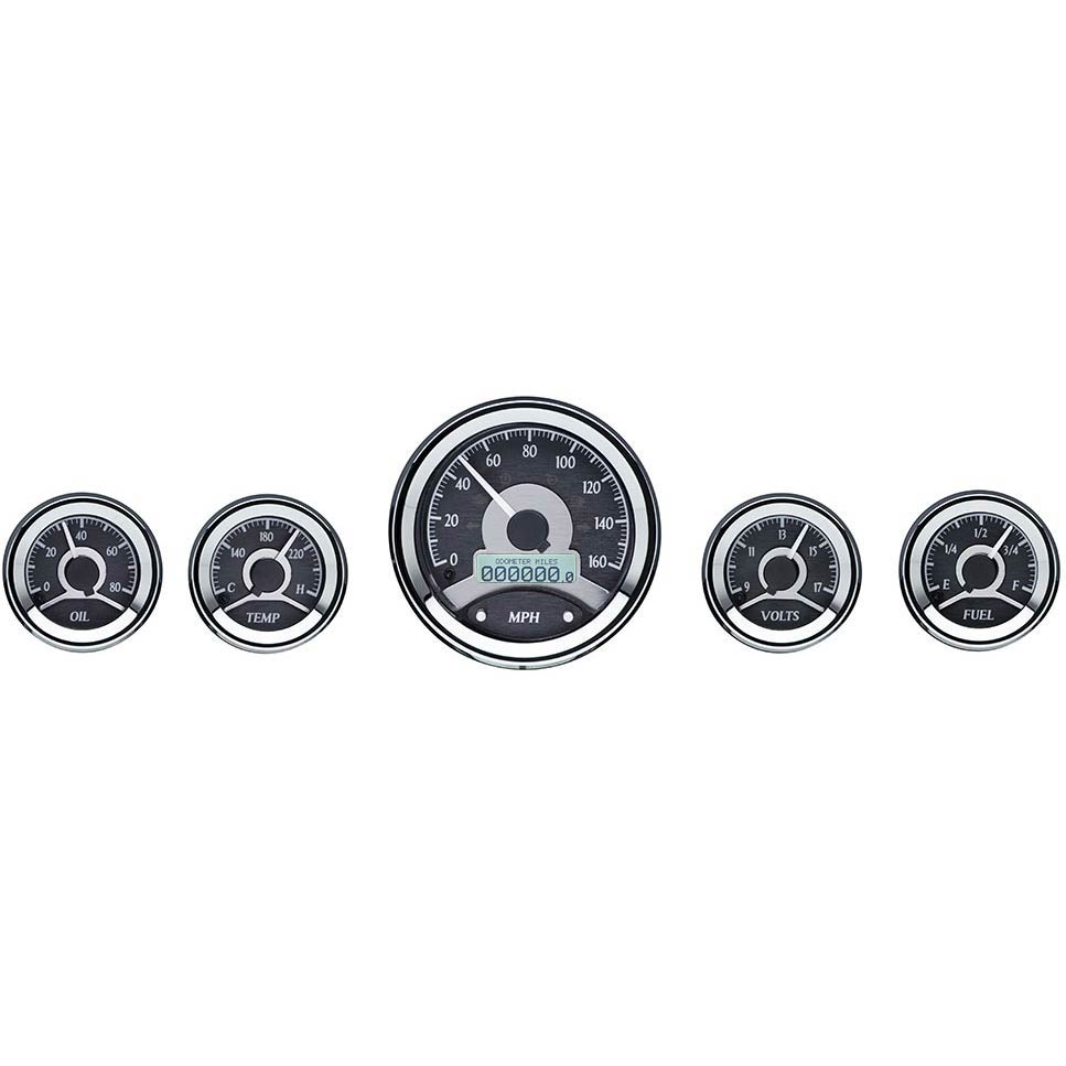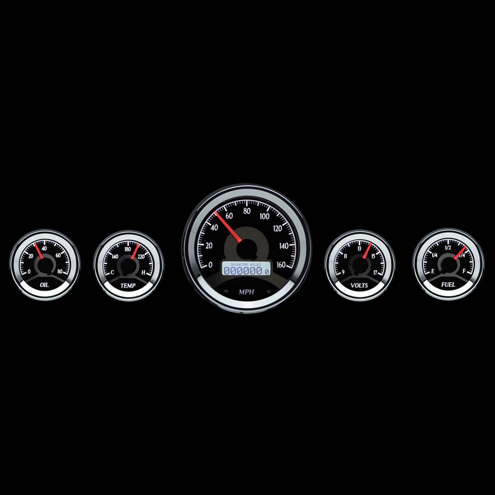 VHX-1050-S-W Universal 5 Gauge Round Package Silver Alloy with White Illumination