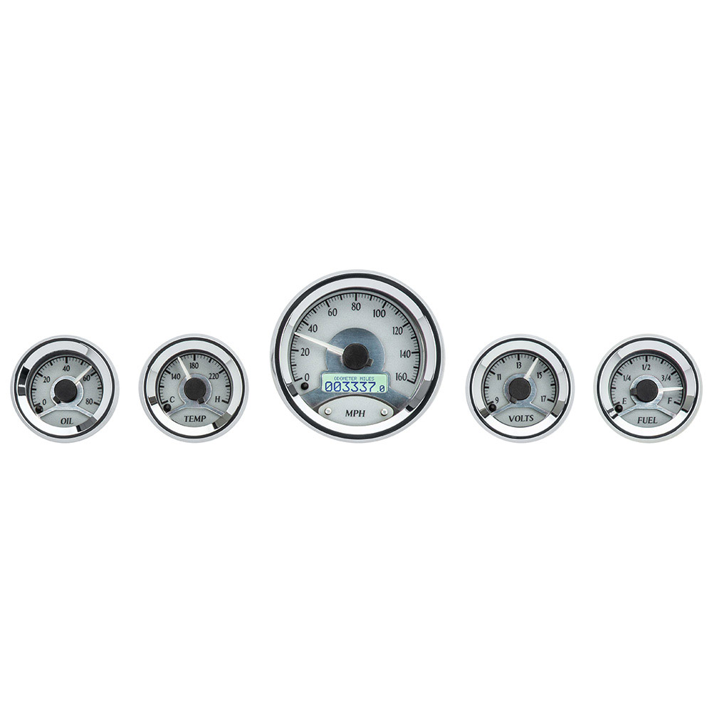5-Gauge Round Univ VHX Gauge Kit - Silver Alloy/White