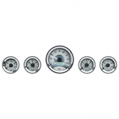 VHX-1050-S-W Universal 5 Gauge Round Package Silver Alloy with White Illumination