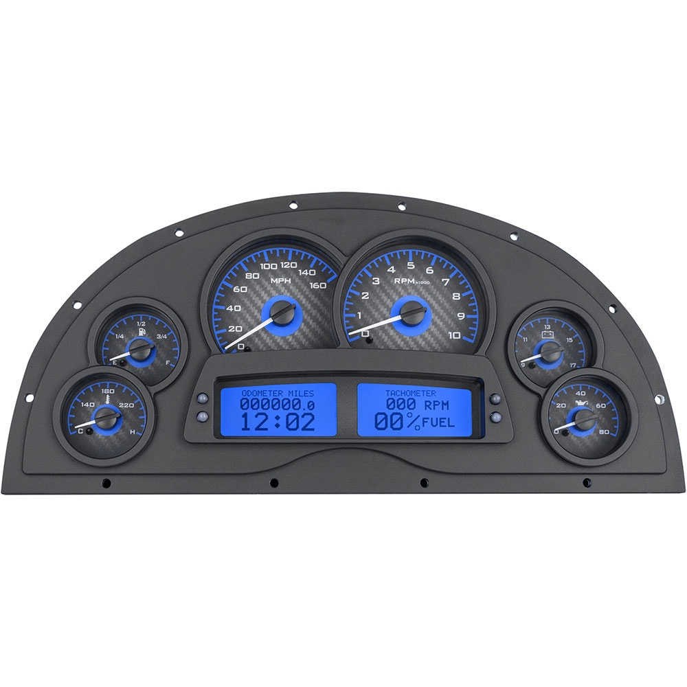 This Dakota Digital VHX-1200 is designed to fit the Marquez Design Fiberglass Dash for the 1967- 69 Camaro. Created as a crossover between the pure function of race gauges and the usability of street instrumentation, this system provides the best of both worlds. With a 0-160 MPH Speedometer, a 0-10,000 RPM Tach and large-sweep Oil Pressure, Temperature, Voltmeter and Fuel Level readouts, even the most radical of applications are covered. Four programmable, digital message centers allow for nearly unlimited expansion.