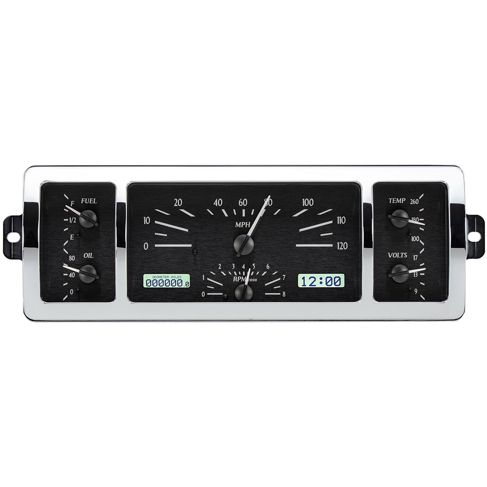 This Dakota Digital gauge kit is a direct fit replacement for 1940- 46 Chevrolet pickups, this kit includes a chrome machined aluminum font bezel. Available with your choice of black or silver face styling; either way you get six analog gauge readings augmented by a pair of LCD digital message centers. Speedometer runs to 120mph, and the supplied sensors make installation a breeze, whatever engine and transmission you choose!