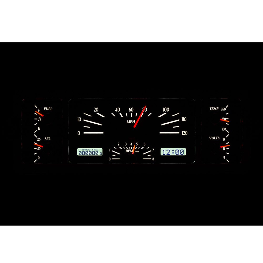 Fully lit needles, backlit faces, and highly visible LCD message centers are a few of the things that you can see which set the VHX Series apart from others traditional approach to instrumentation. A few of the features which you don’t normally see are the micro-controlled precision stepper motors, solid state sensors for unparalleled accuracy, and user-customizable display feedback, all supported by an unrivaled limited lifetime warranty which has become the standard for Dakota Digital systems . Completely engineered and manufactured by Dakota Digital in Sioux Falls, South Dakota, the VHX Series has completely revolutionized the instrumentation industry.