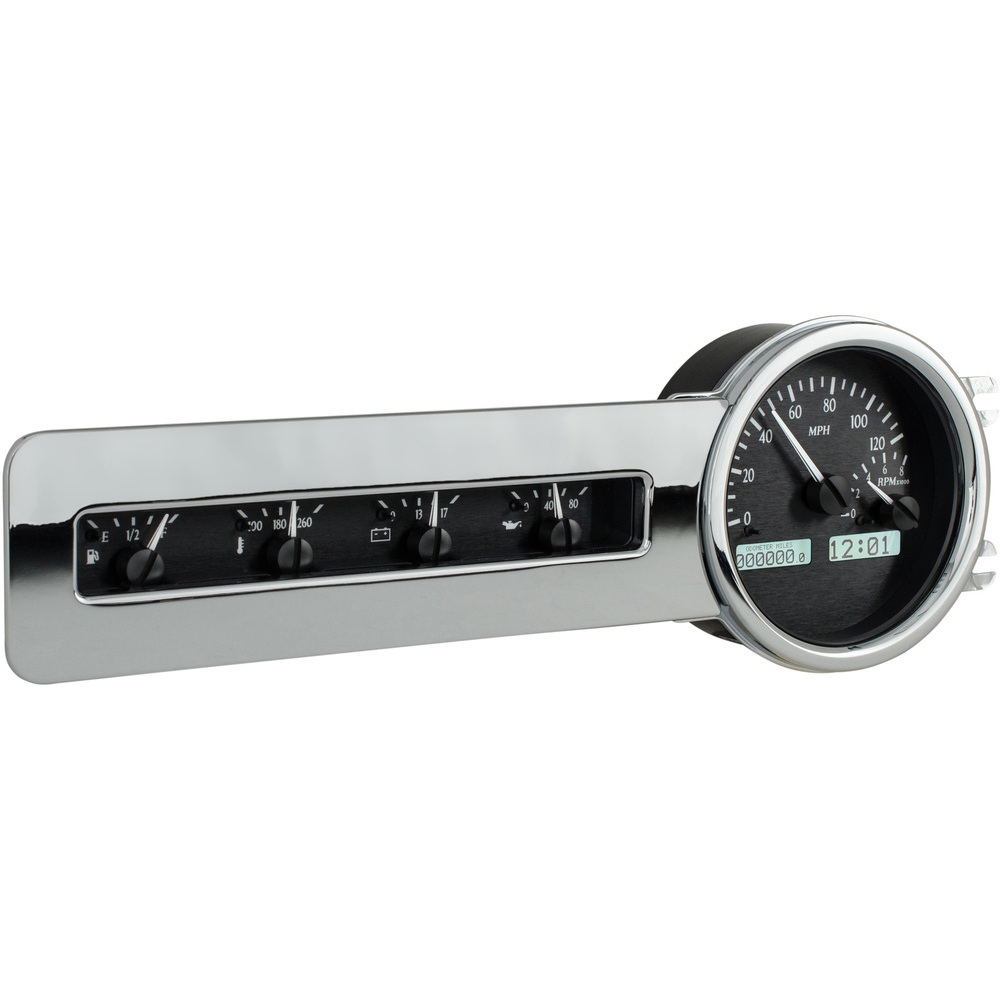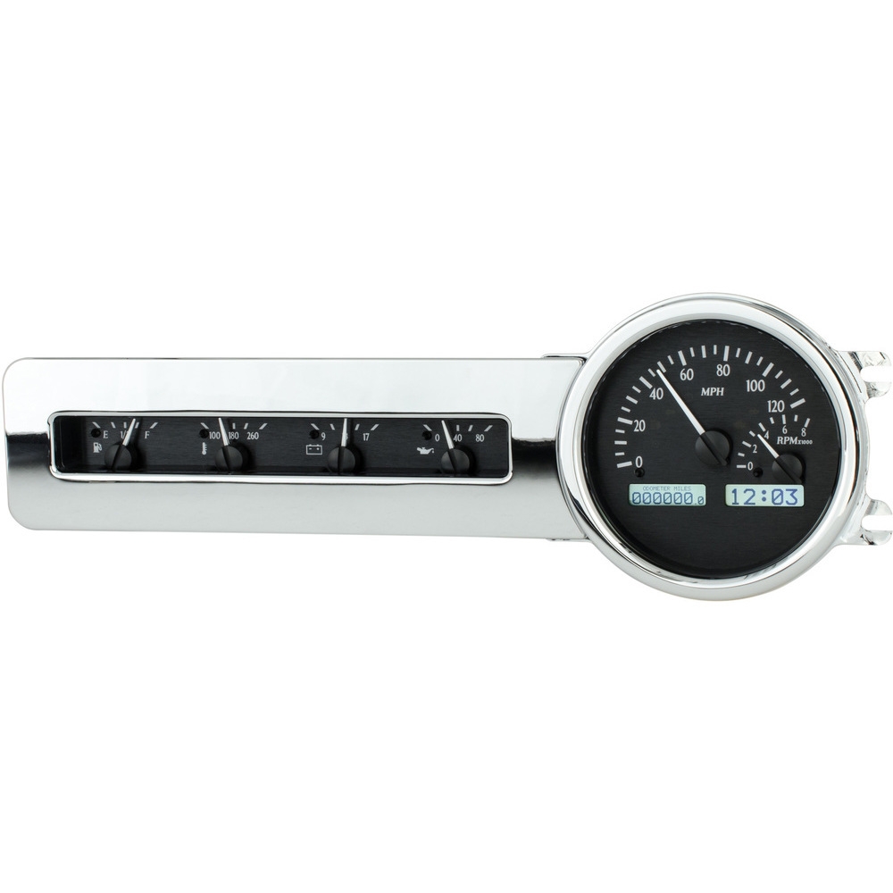 This Dakota Digital VHX gauge kit fits directly into the stock instrument bezel of a 1941- 48 Chevy Car without modification. Includes new chrome bezels.