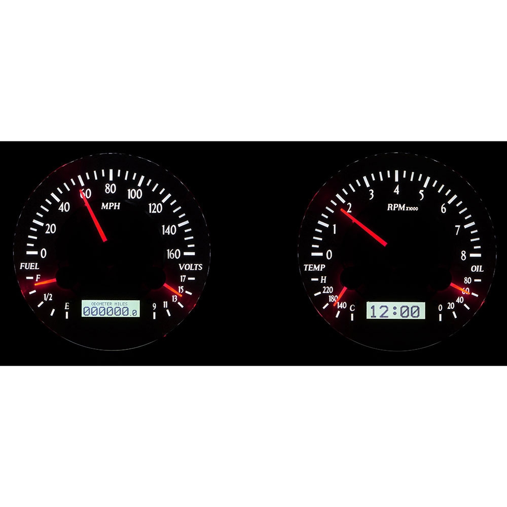 Fully lit needles, backlit faces, and highly visible LCD message centers are a few of the things that you can see which set the VHX Series apart from yesterday’s traditional approach to instrumentation. A few of the features which you don’t normally see are the micro-controlled precision stepper motors, solid state sensors for unparalleled accuracy, and user-customizable display feedback, all supported by an unrivaled limited lifetime warranty which has become the standard for Dakota Digital instrumentation systems . Completely engineered and manufactured in Sioux Falls, South Dakota, the VHX Series has completely revolutionized the instrumentation industry.