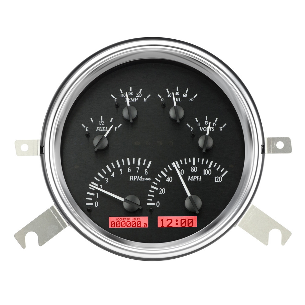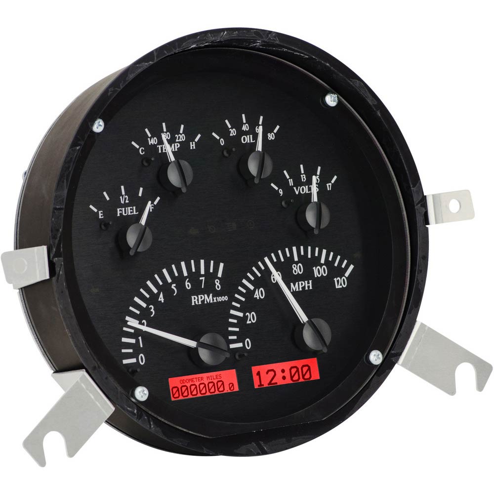 The Dakota Digital VHX Systems fit directly into the stock instrument bezel of a 1949-50 Chevy Car without modification.
