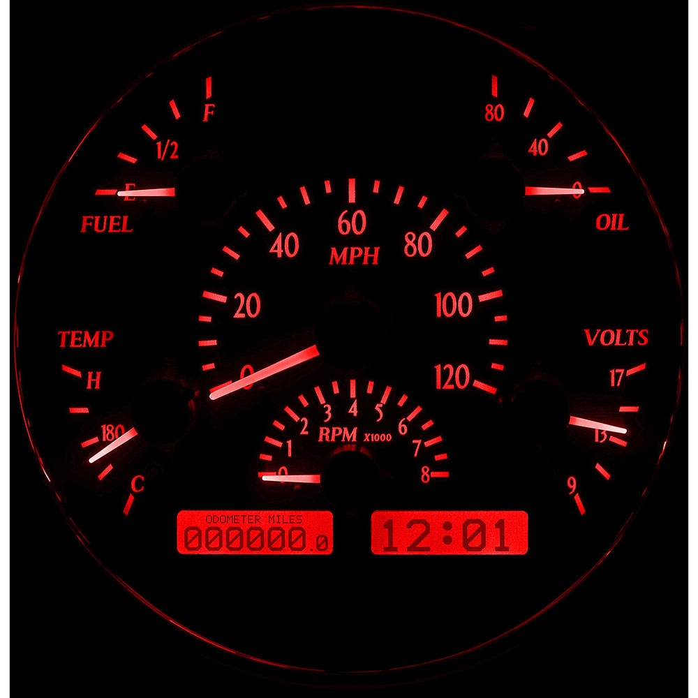 Fully lit needles, backlit faces, and highly visible LCD message centers are a few of the things that you can see which set the VHX Series apart from yesterday’s traditional approach to instrumentation. A few of the features which you don’t normally see are the micro-controlled precision stepper motors, solid state sensors for unparalleled accuracy, and user-customizable display feedback, all supported by an unrivaled limited lifetime warranty which has become the standard for Dakota Digital instrumentation systems . Completely engineered and manufactured by Dakota Digital in Sioux Falls, South Dakota, the VHX Series has completely revolutionized the instrumentation industry!