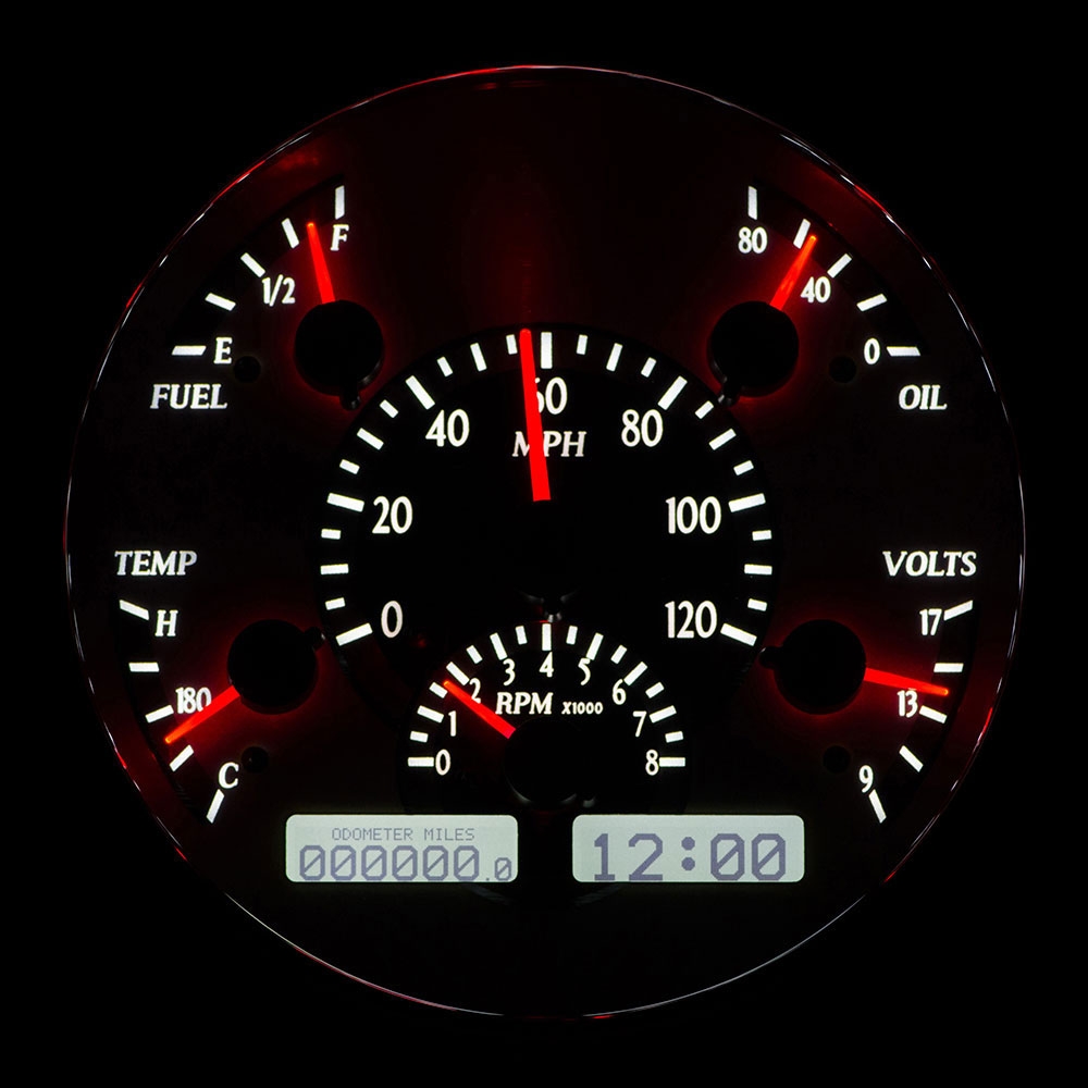 Fully lit needles, backlit faces, and highly visible LCD message centers are a few of the things that you can see which set the VHX Series apart from yesterday’s traditional approach to instrumentation. A few of the features which you don’t normally see are the micro-controlled precision stepper motors, solid state sensors for unparalleled accuracy, and user-customizable display feedback, all supported by an unrivaled limited lifetime warranty which has become the standard for Dakota Digital instrumentation systems . Completely engineered and manufactured by Dakota Digital in Sioux Falls, South Dakota, the VHX Series has completely revolutionized the instrumentation industry!