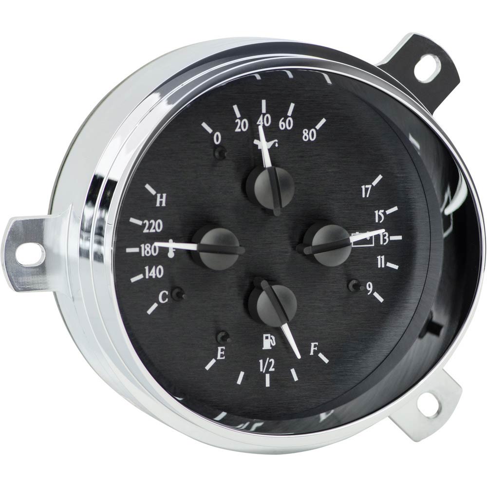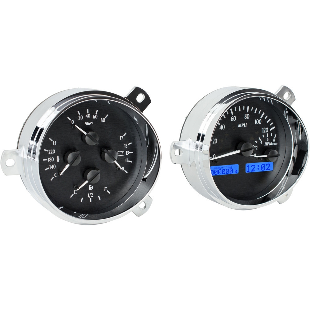 This Dakota Digital VHX gauge kit fits directly into the stock opening of a 1951-52 Chevy Car without modification and includes new chromed billet aluminum instrument housings.