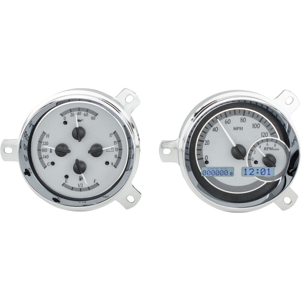 This Dakota Digital VHX gauge kit fits directly into the stock opening of a 1951-52 Chevy Car without modification and includes new chromed billet aluminum instrument housings.