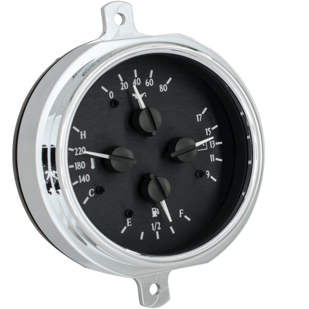 Is your F1 hittin’ the streets with crumbling, stock gauges? There is no excuse now that these billet aluminum bodies are wrapped around precision stepper motors with blue, red or white LEDs. Designed to bolt directly into a stock dashboard with no modifications, the high-tech six-gauge instrument system plays harmony to traditional styling with your choice of Black or Silver Alloy face styling. Drivetrain options are endless with the supplied sending units for oil, water and speed.