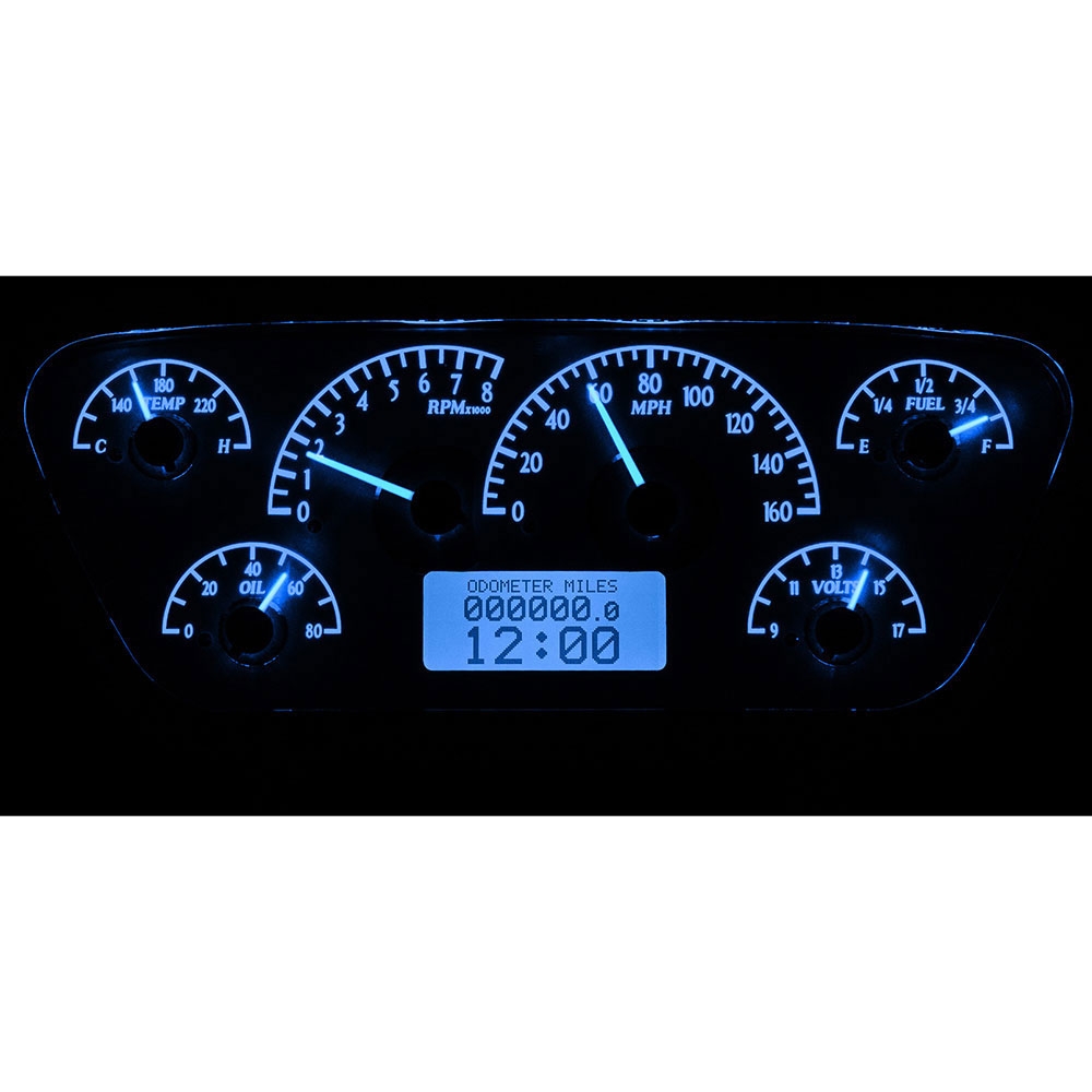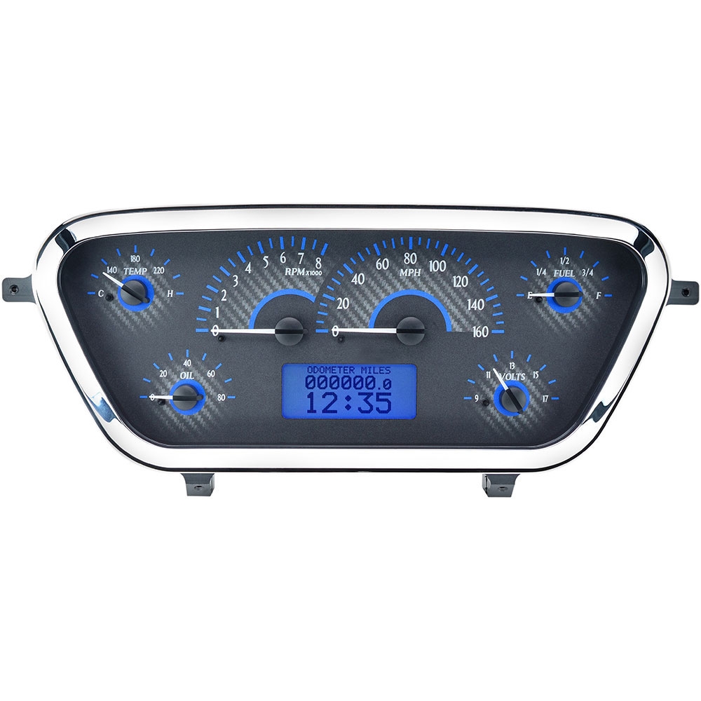 1953-55 Ford Pickup Truck VHX Gauge Kit - Carbon Fiber/Blue