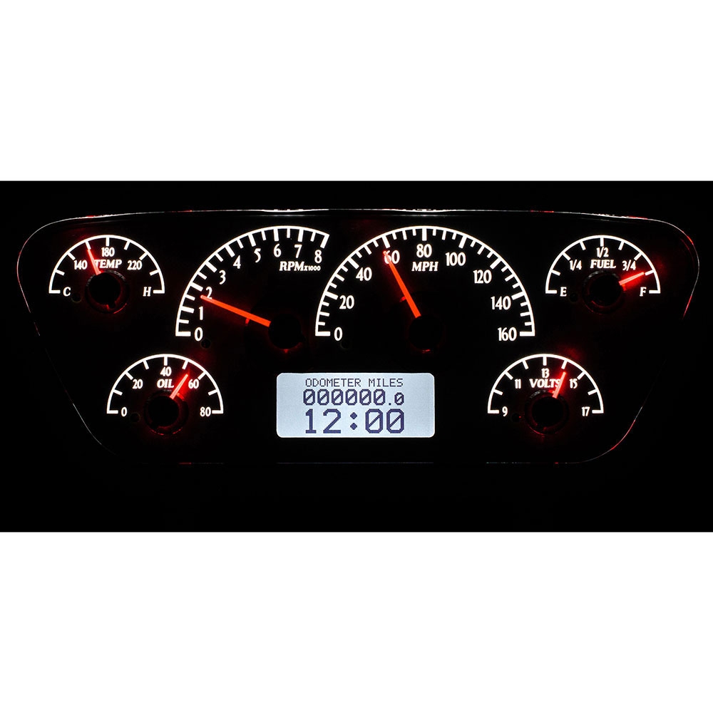 Fully lit needles, backlit faces, and highly visible LCD message centers are a few of the things that you can see which set the VHX Series apart from yesterday’s traditional approach to instrumentation. A few of the features which you don’t normally see are the micro-controlled precision stepper motors, solid state sensors for unparalleled accuracy, and user-customizable display feedback, all supported by an unrivaled limited lifetime warranty which has become the standard for Dakota Digital instrumentation systems . Completely engineered and manufactured in Sioux Falls, South Dakota, the VHX Series has completely revolutionized the instrumentation industry!