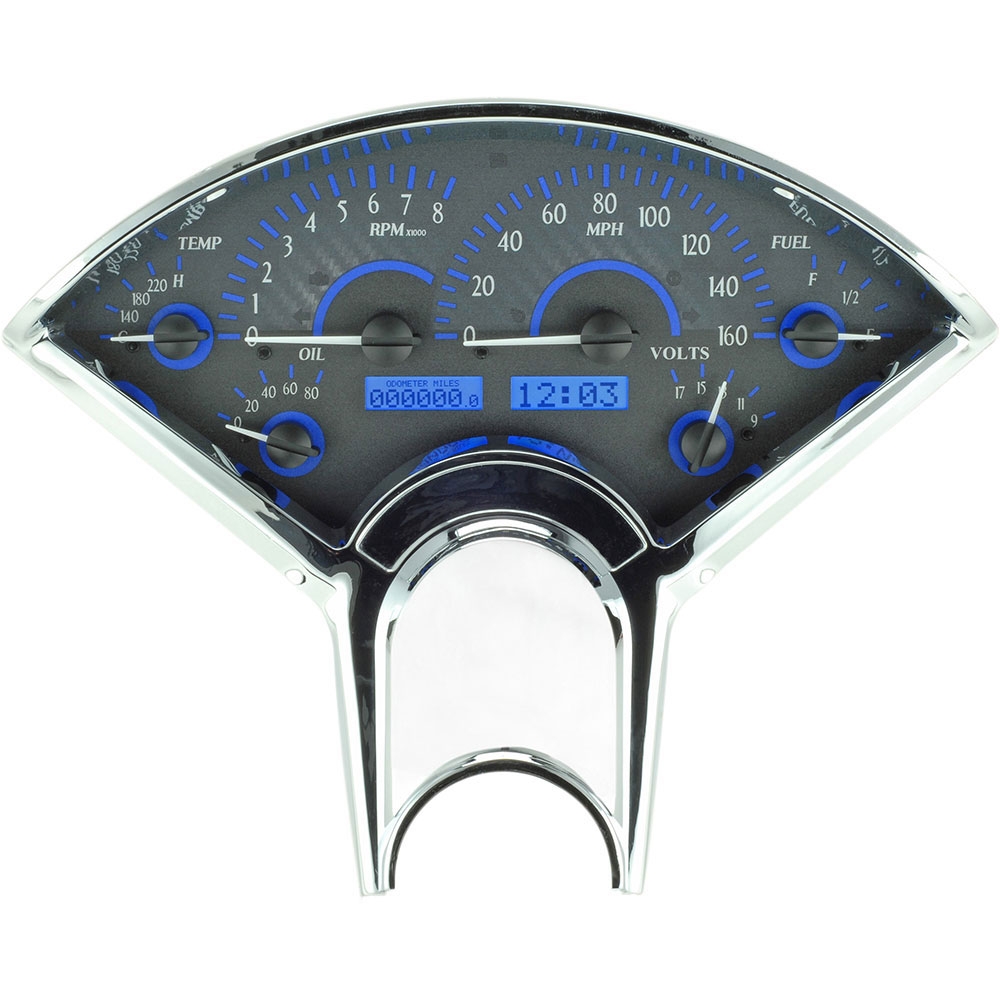 1955-56 Chevy Pass Car VHX Series Gauges - Carbon Fiber/Blue