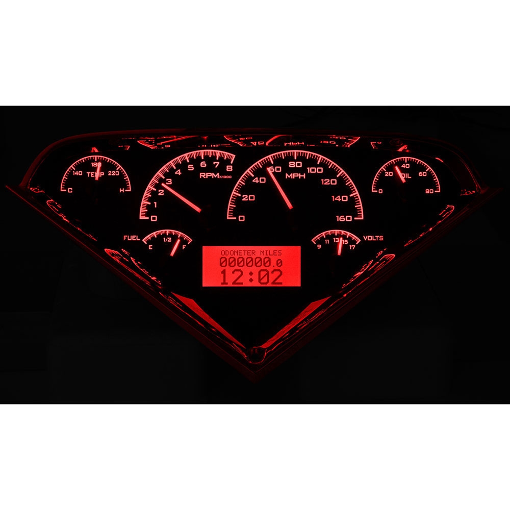 Fully lit needles, backlit faces, and highly visible LCD message centers are a few of the things that you can see which set the VHX Series apart from yesterday’s traditional approach to instrumentation. A few of the features which you don’t normally see are the micro-controlled precision stepper motors, solid state sensors for unparalleled accuracy, and user-customizable display feedback, all supported by an unrivaled limited lifetime warranty which has become the standard for Dakota Digital instrumentation systems . Completely engineered and manufactured by Dakota Digital Sioux Falls, South Dakota, the VHX Series has completely revolutionized the instrumentation industry!