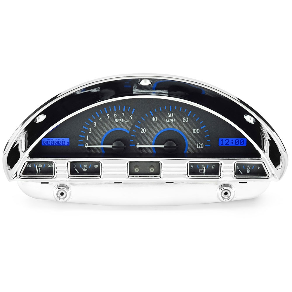 1956 Ford Pickup Truck VHX Gauge Kit - Carbon Fiber/Blue