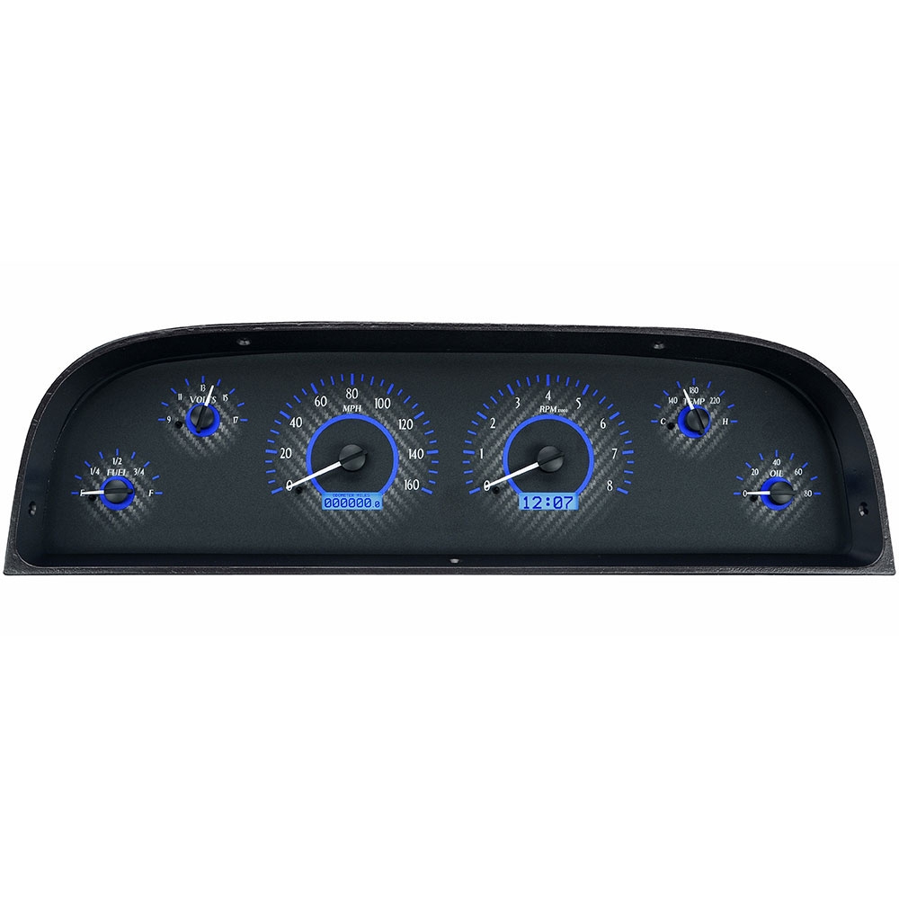 1960-63 Chevy P/U Truck VHX Gauge Kit - Carbon Fiber/Blue