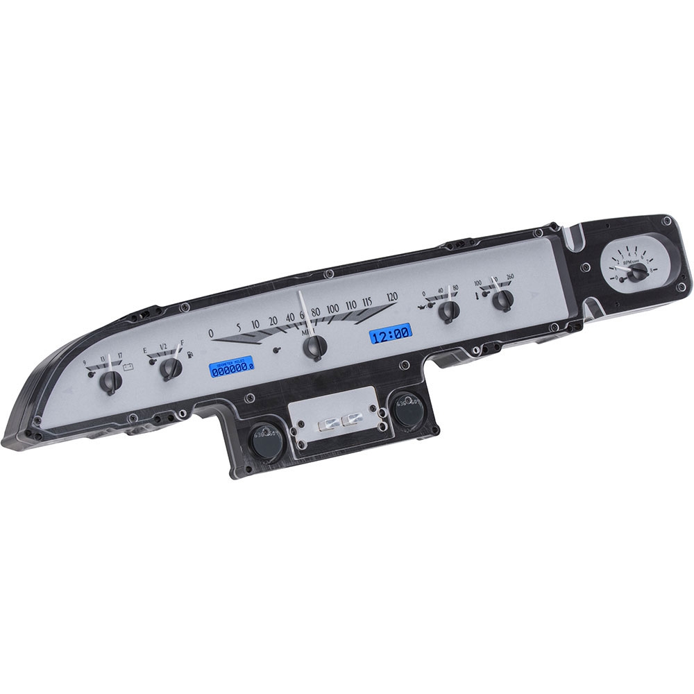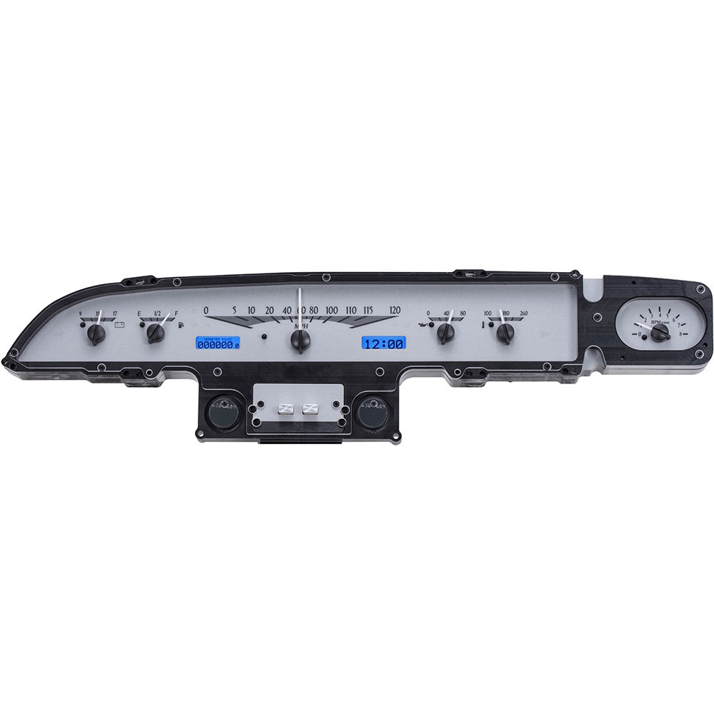 This Dakota Digital VHX gauge kit fits directly into the stock instrument housing of a 1960 Ford Galaxie adding a ton of new information to this vehicle.
