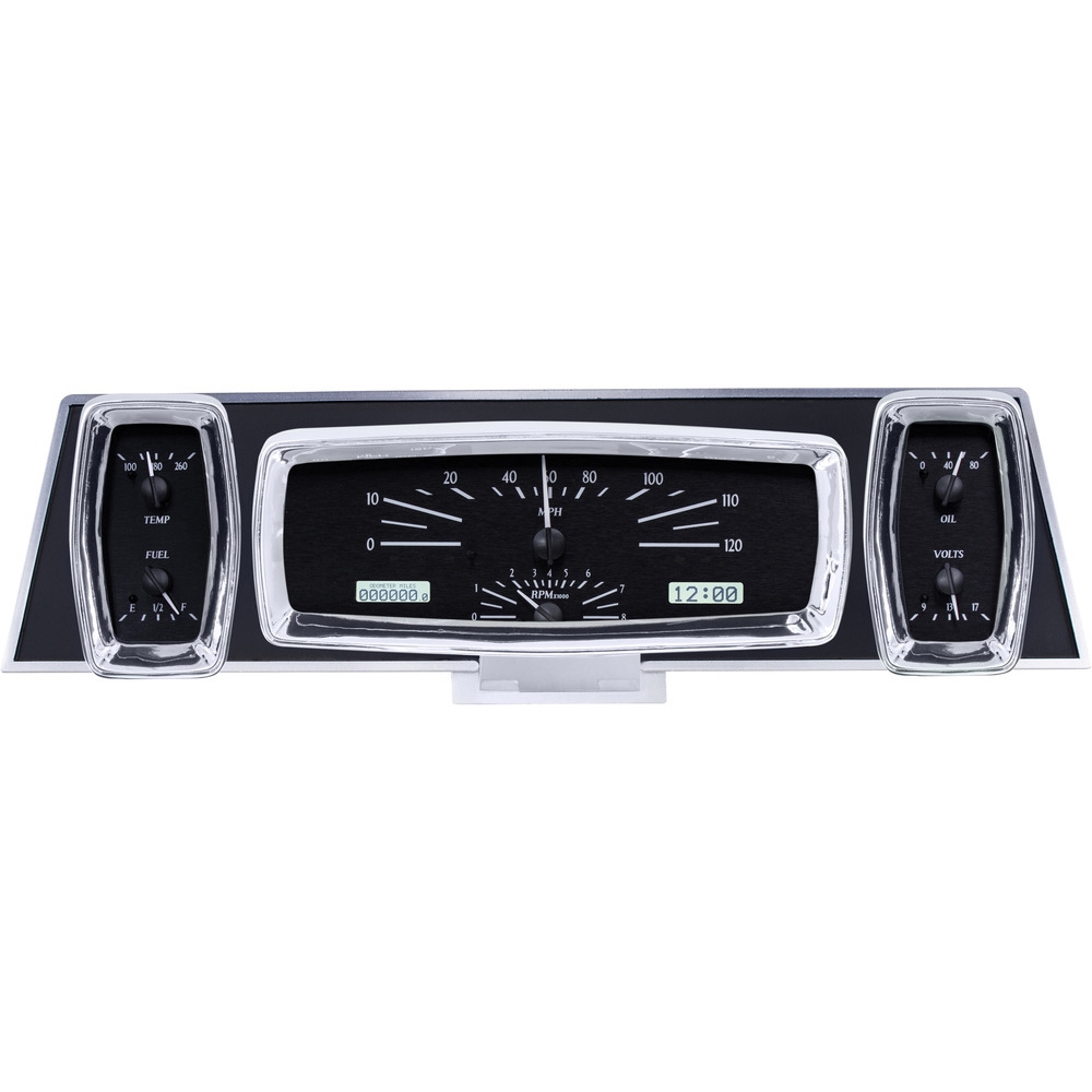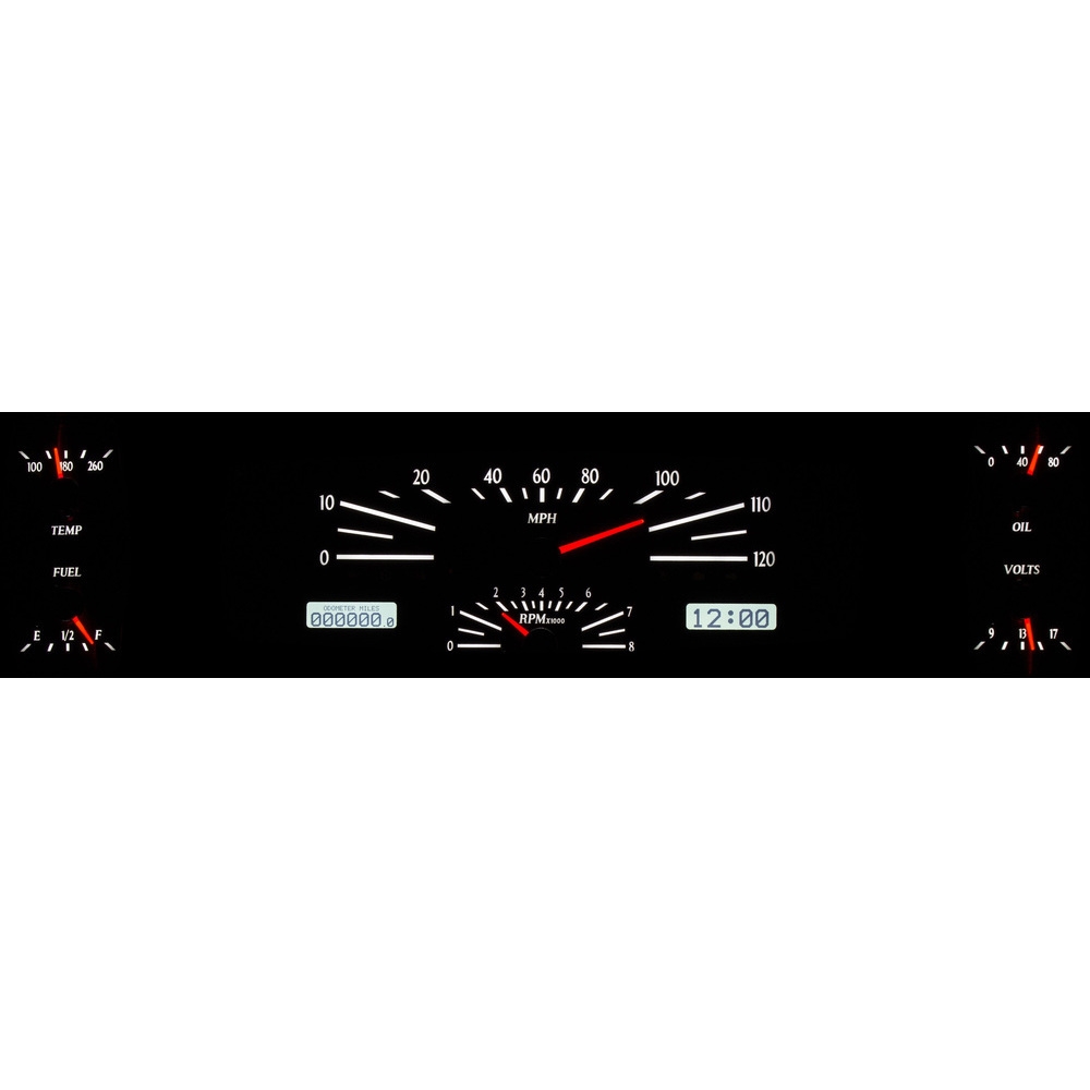 This Dakota Digital direct fit analog instrument system perfectly fills out the three rectangle gauge bezels with six needles as well as dual LCD message centers. Choose from Black or Silver Alloy face styling, and ask not what your Lincoln can do for you, but rather what you can do for your Lincoln.