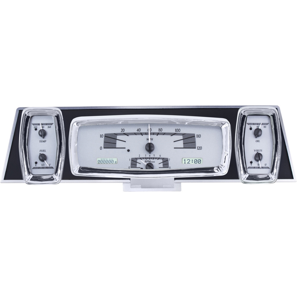 This Dakota Digital direct fit analog instrument system perfectly fills out the three rectangle gauge bezels with six needles as well as dual LCD message centers. Choose from Black or Silver Alloy face styling, and ask not what your Lincoln can do for you, but rather what you can do for your Lincoln.