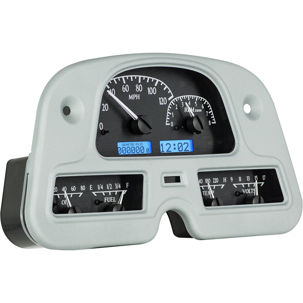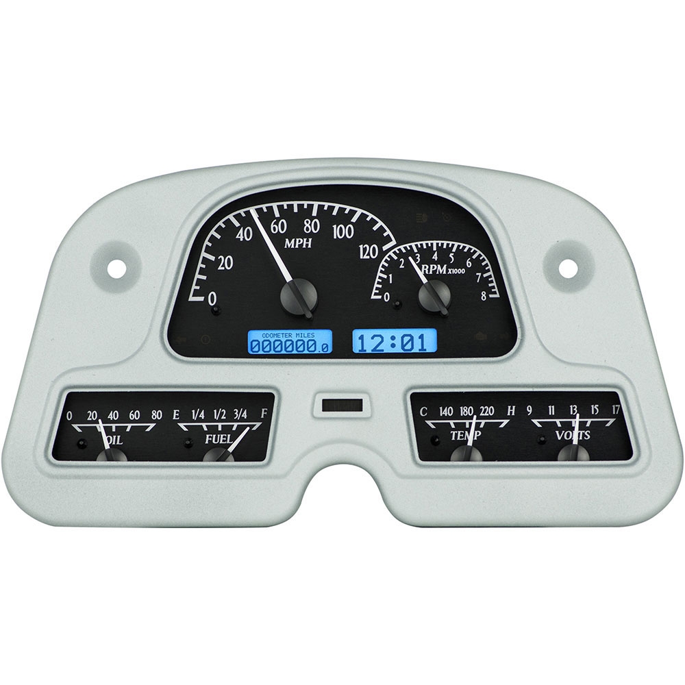 Cruisers unite! Just what you’ve been waiting for; a simple, direct-fit instrument system that brings all the function of a six-gauge package with none of the cutting, welding or molestation. Making use of your stock bezel, this kit slips into the factory dash opening with your choice of Black or Silver Alloy face styling. Supplied sensors accommodate stock or swapped-in drivetrains, and metric-units for Speed and Temperature are available on-demand. Add DSL-1/2 for diesel conversions!