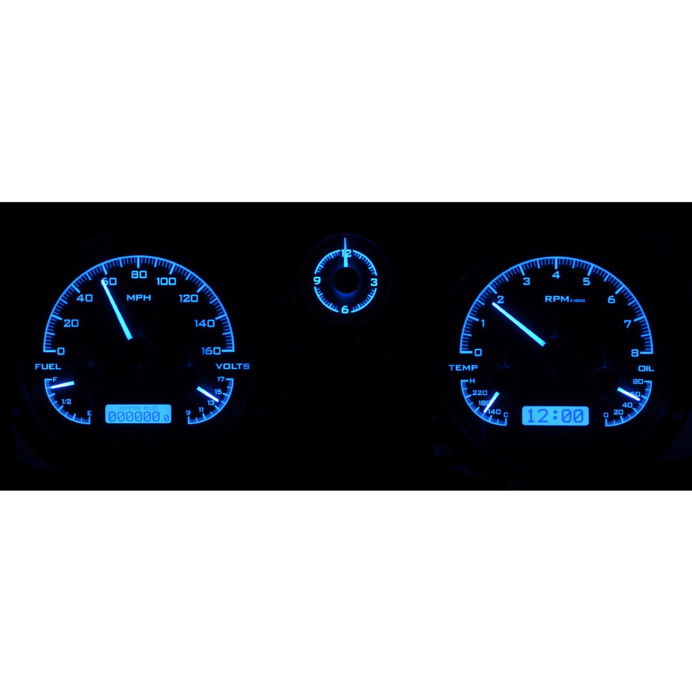 This Dakota Digital VHX gauge kit fits directly into the stock dash of a 1963-65 Buick Rivera, utilizing the factory gauge bezels. Some modifications to the internals of the gauge housing are required, but are thoroughly explained in the detailed installation manual.