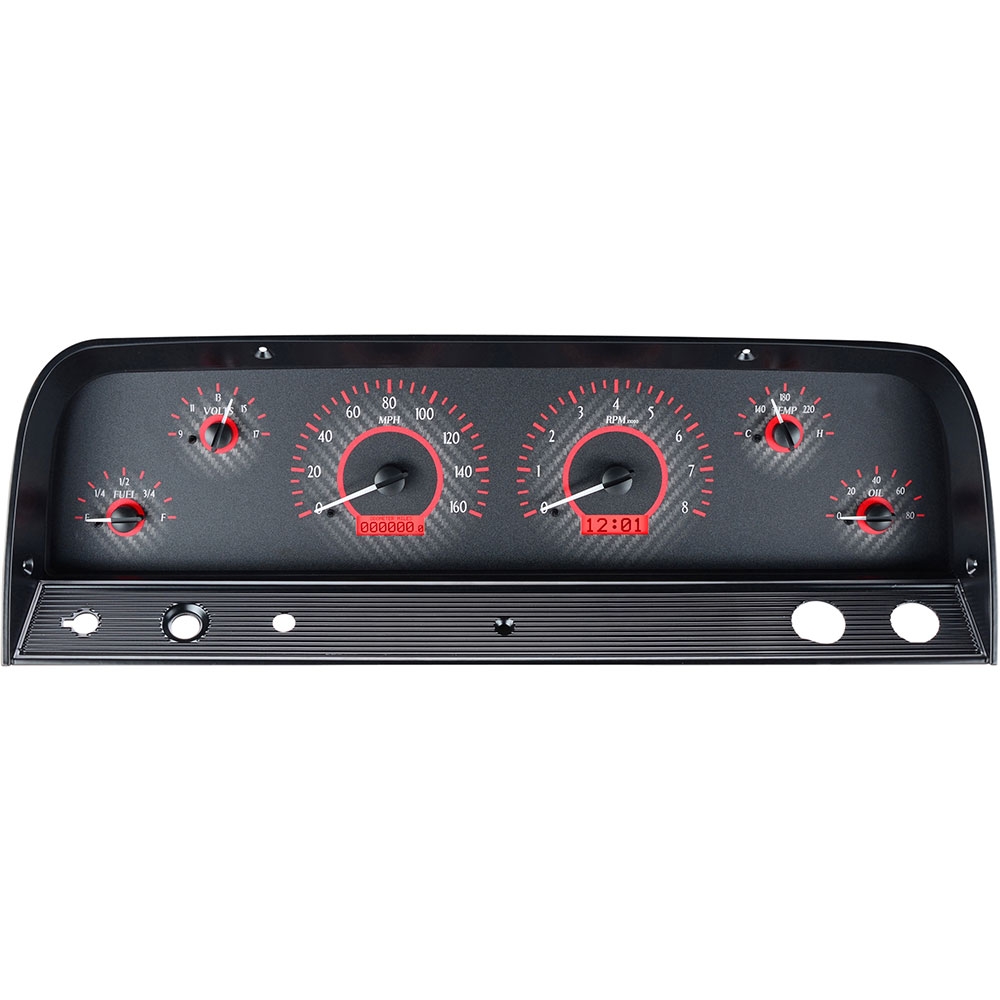 1964-66 Chevy Pickup VHX Gauge Kit - Carbon Fiber/Red