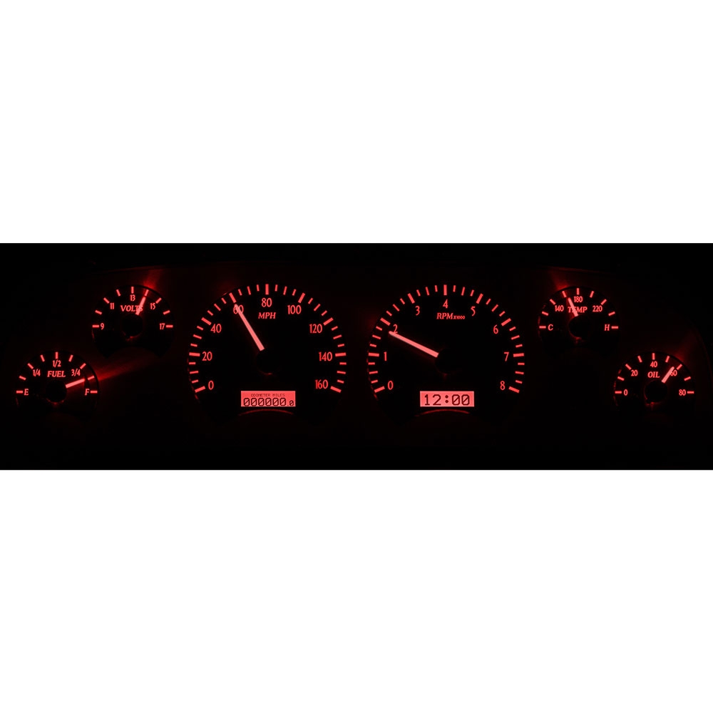 Fully lit needles, backlit faces, and highly visible LCD message centers are a few of the things that you can see which set the VHX Series apart from yesterday’s traditional approach to instrumentation. A few of the features which you don’t normally see are the micro-controlled precision stepper motors, solid state sensors for unparalleled accuracy, and user-customizable display feedback, all supported by an unrivaled limited lifetime warranty which has become the standard for Dakota Digital instrumentation systems . Completely engineered and manufactured by Dakota Digital in Sioux Falls, South Dakota, the VHX Series has completely revolutionized the instrumentation industry!