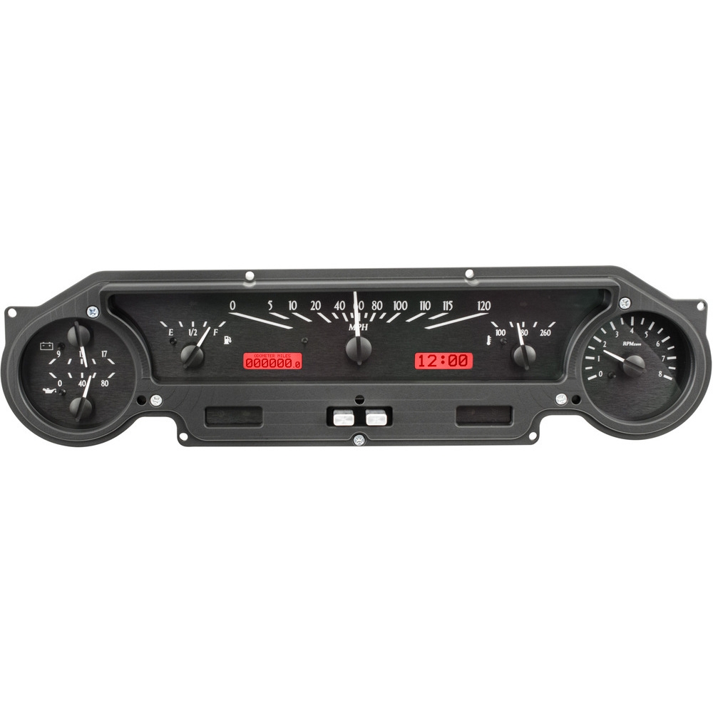 VHX-64F-FAL-K-R 1964-65 Falcon VHX Gauge Kit, Black Alloy/Red