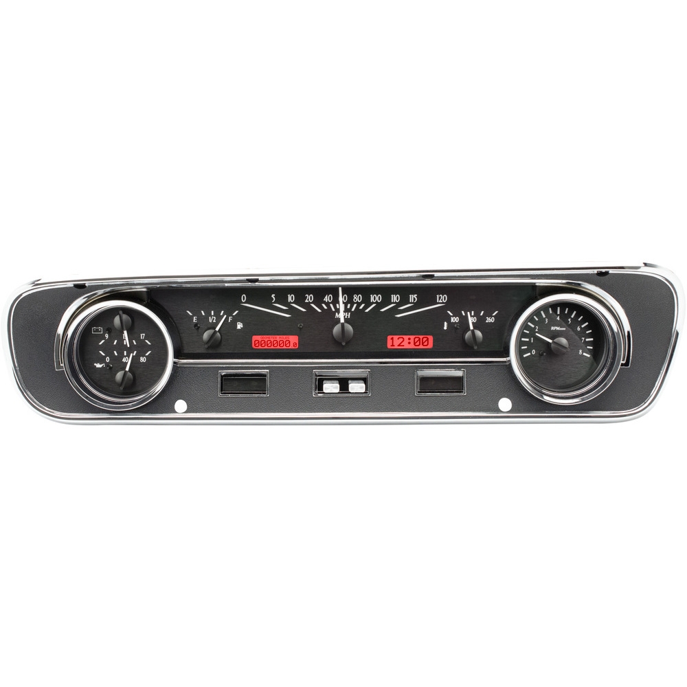 This Dakota Digital VHX gauge kit fits directly into the stock instrument housing of a 1964-65 Ford Falcon and 1964-1/2 and 1965 Mustang without the Pony interior package.