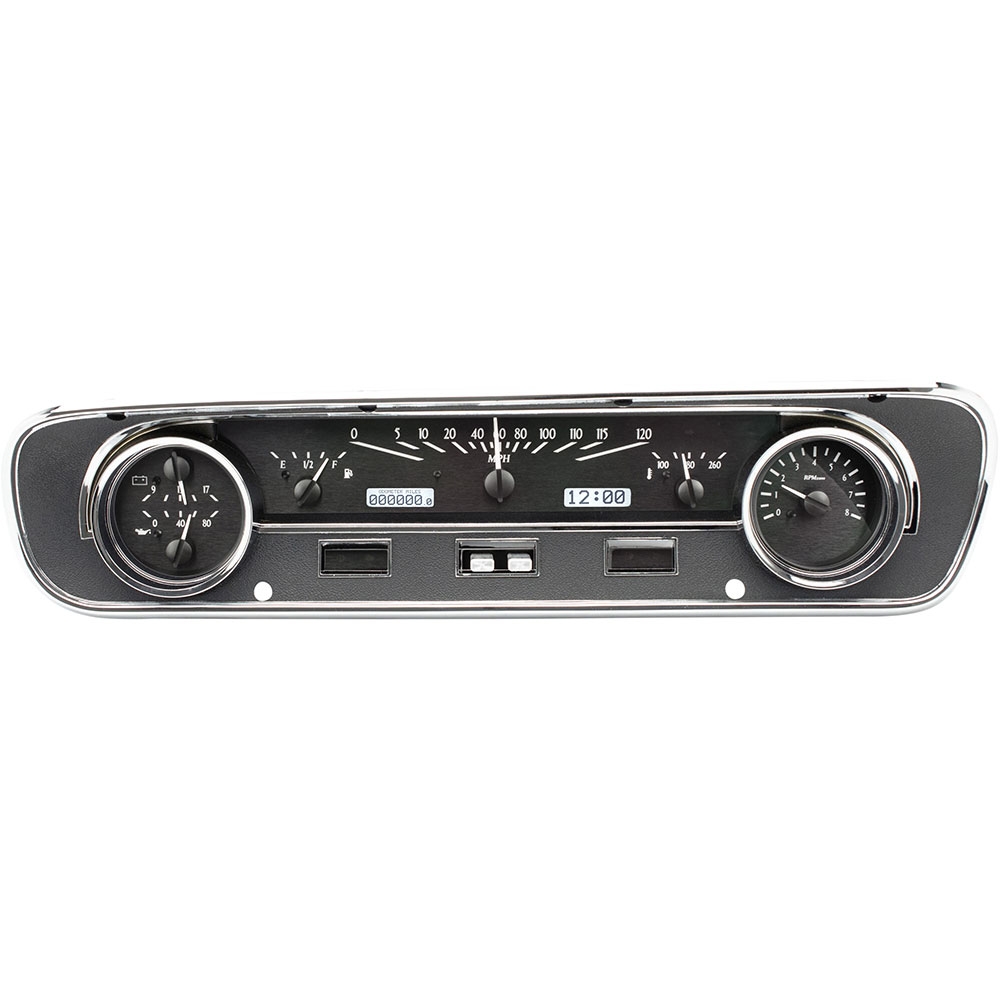 This Dakota Digital VHX gauge kit fits directly into the stock instrument housing of a 1964-65 Ford Falcon and 1964-1/2 and 1965 Mustang without the Pony interior package.