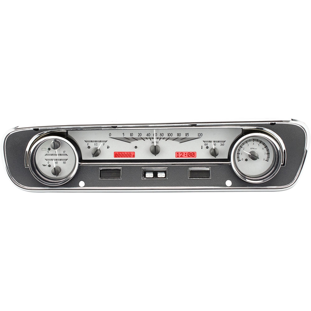 This Dakota Digital VHX gauge kit fits directly into the stock instrument housing of a 1964-65 Ford Falcon and 1964-1/2 and 1965 Mustang without the Pony interior package.