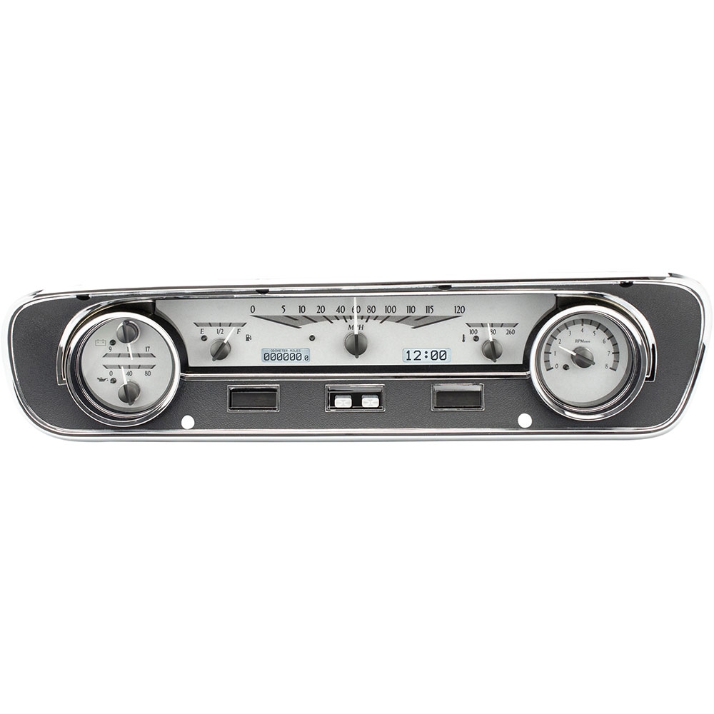 This Dakota Digital VHX gauge kit fits directly into the stock instrument housing of a 1964-65 Ford Falcon and 1964-1/2 and 1965 Mustang without the Pony interior package.