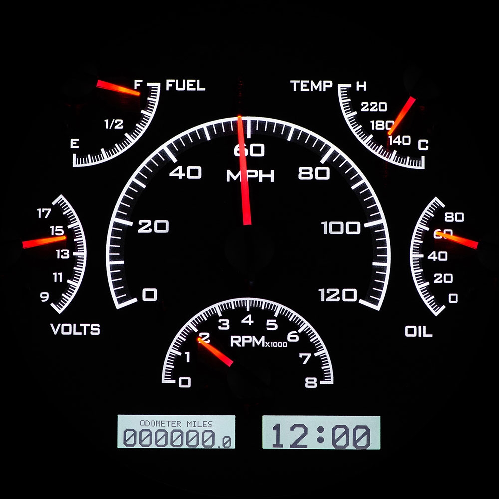Fully lit needles, backlit faces, and highly visible LCD message centers are a few of the things that you can see which set the VHX Series apart from yesterday’s traditional approach to instrumentation. A few of the features which you don’t normally see are the micro-controlled precision stepper motors, solid state sensors for unparalleled accuracy, and user-customizable display feedback, all supported by an unrivaled limited lifetime warranty which has become the standard for Dakota Digital instrumentation systems . Completely engineered and manufactured in Sioux Falls, South Dakota, the VHX Series has completely revolutionized the instrumentation industry!