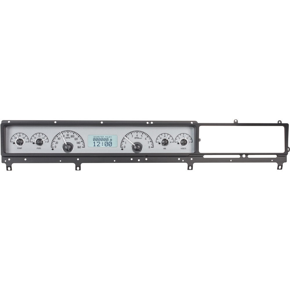 This 6-gauge system includes a new, fully-machined rear gauge housing, attaching directly to the stock dash. Since the stock clear lens is removed (which integrates through the stock radio), a pair of plates to block off this space, add an OEM radio, or cut the blank for simple installation of a DIN radio.