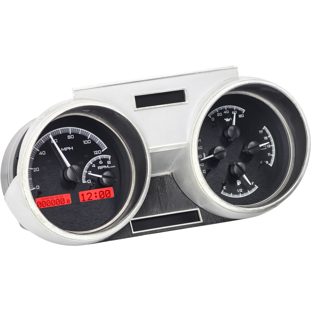 This Dakota Digital VHX gauge kit fits directly into the stock instrument bezel of the 1966-67 Oldsmobile Cutlass. Some modification is required to the inside of the stock instrument housing, but is clearly outlined in the included manual.