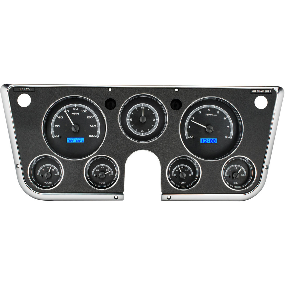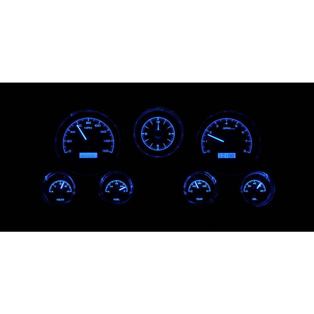 Fully lit needles, backlit faces, and highly visible LCD message centers are a few of the things that you can see which set the VHX Series apart from yesterday’s traditional approach to instrumentation. A few of the features which you don’t normally see are the micro-controlled precision stepper motors, solid state sensors for unparalleled accuracy, and user-customizable display feedback, all supported by an unrivaled limited lifetime warranty which has become the standard for Dakota Digital instrumentation systems . Completely engineered and manufactured at our facility in Sioux Falls, South Dakota, the VHX Series has completely revolutionized the instrumentation industry! This Kit has an Analog Clock.