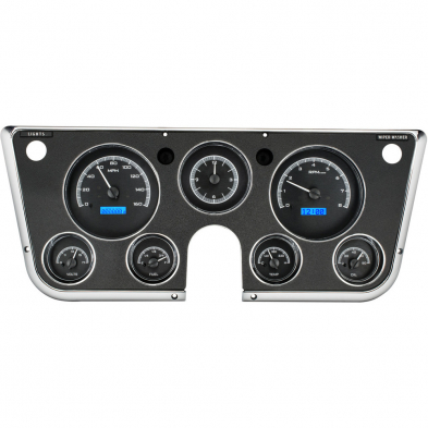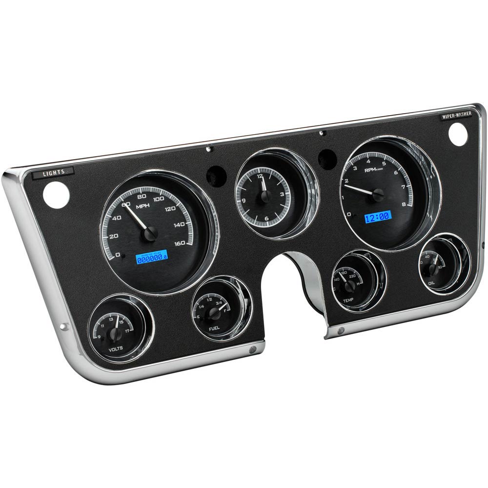 1967-72 Chevy/GMC P/U VHX Kits Anl Clock - Black Alloy/Blue