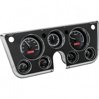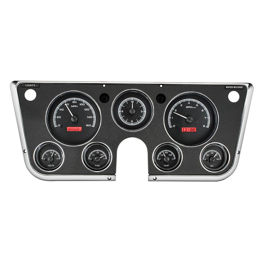 1967-72 Chevy/GMC P/U VHX Gauge Kit Anl Clock - Black/Red