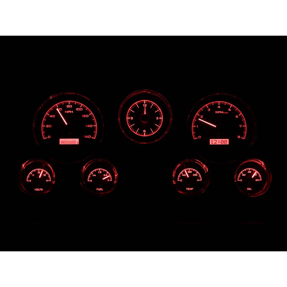 Fully lit needles, backlit faces, and highly visible LCD message centers are a few of the things that you can see which set the VHX Series apart from yesterday’s traditional approach to instrumentation. A few of the features which you don’t normally see are the micro-controlled precision stepper motors, solid state sensors for unparalleled accuracy, and user-customizable display feedback, all supported by an unrivaled limited lifetime warranty which has become the standard for Dakota Digital instrumentation systems . Completely engineered and manufactured at our facility in Sioux Falls, South Dakota, the VHX Series has completely revolutionized the instrumentation industry! This Kit has an Analog Clock.