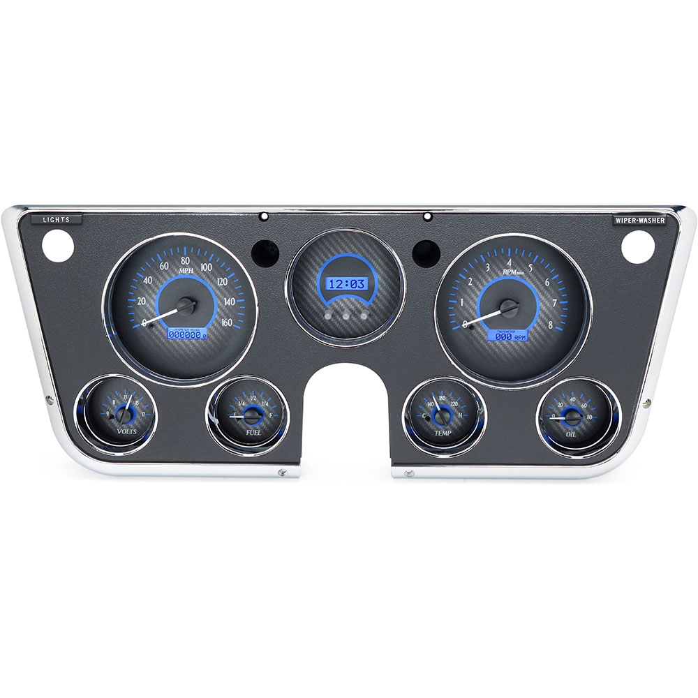 1967-72 Chevy & GMC Pickup VHX Gauge Kit - Carbon Fiber/Blue