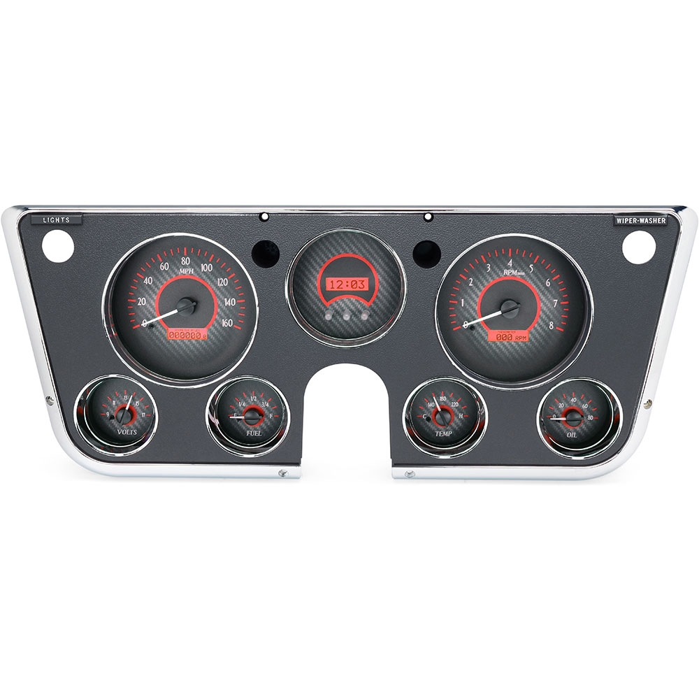 1967-72 Chevy & GMC Pickup VHX Gauge Kit - Carbon Fiber/Red