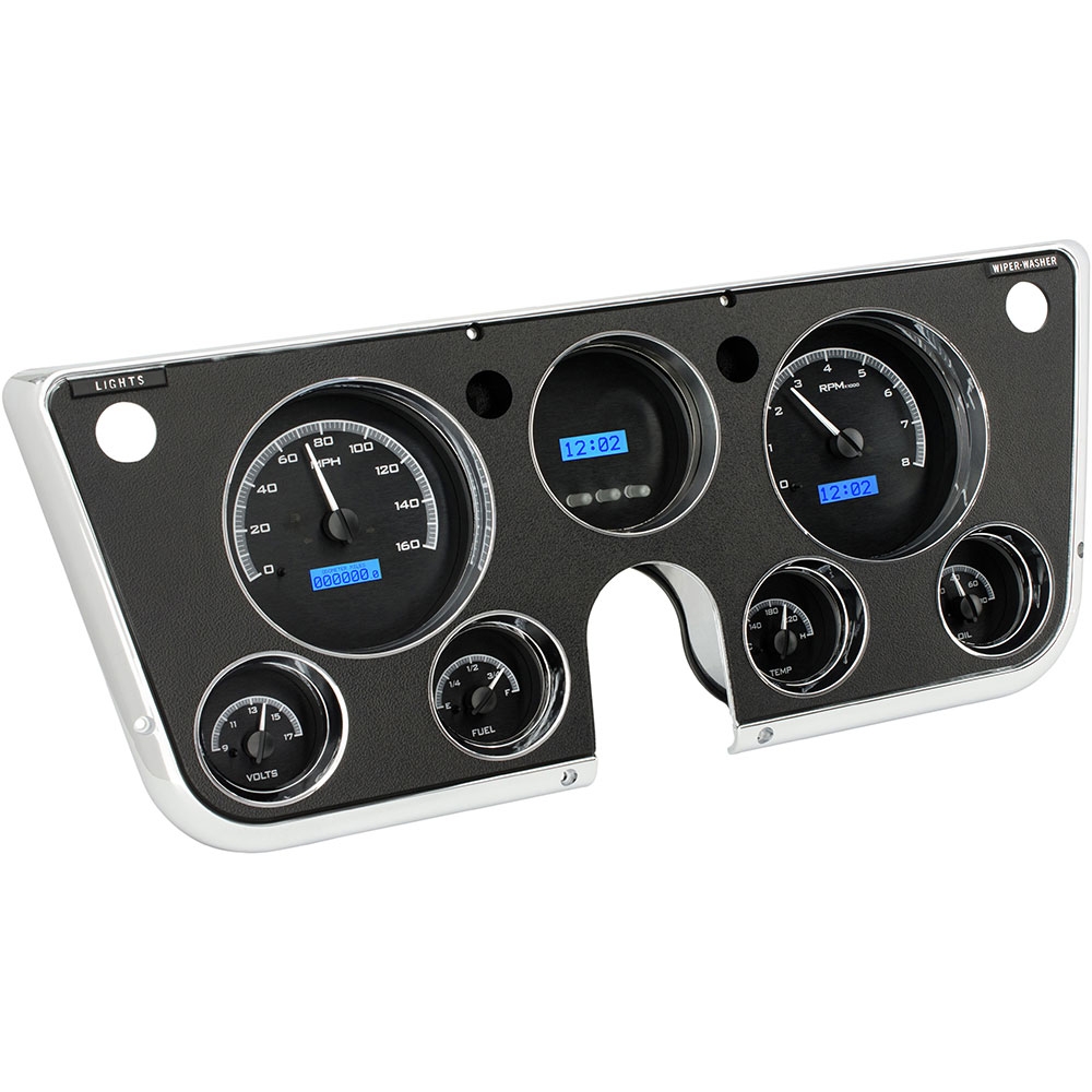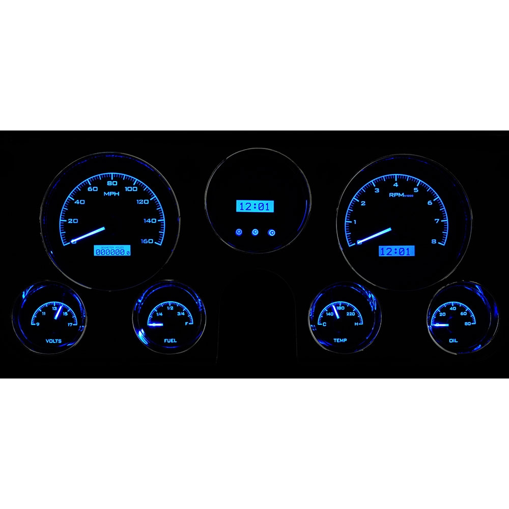 Fully lit needles, backlit faces, and highly visible LCD message centers are a few of the things that you can see which set the VHX Series apart from yesterday’s traditional approach to instrumentation. A few of the features which you don’t normally see are the micro-controlled precision stepper motors, solid state sensors for unparalleled accuracy, and user-customizable display feedback, all supported by an unrivaled limited lifetime warranty which has become the standard for Dakota Digital instrumentation systems . Completely engineered and manufactured at our facility in Sioux Falls, South Dakota, the VHX Series has completely revolutionized the instrumentation industry! This Kit has a Digital clock/ display center.