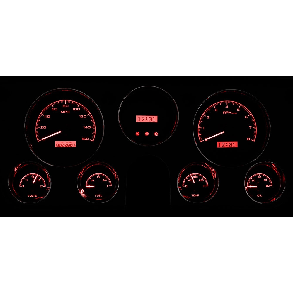 Fully lit needles, backlit faces, and highly visible LCD message centers are a few of the things that you can see which set the VHX Series apart from yesterday’s traditional approach to instrumentation. A few of the features which you don’t normally see are the micro-controlled precision stepper motors, solid state sensors for unparalleled accuracy, and user-customizable display feedback, all supported by an unrivaled limited lifetime warranty which has become the standard for Dakota Digital instrumentation systems . Completely engineered and manufactured at our facility in Sioux Falls, South Dakota, the VHX Series has completely revolutionized the instrumentation industry! This Kit has a Digital clock/ display center.