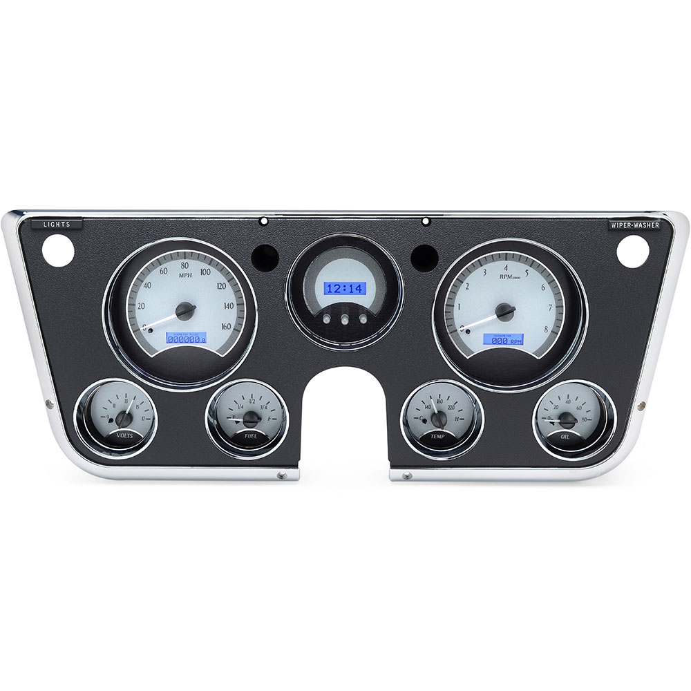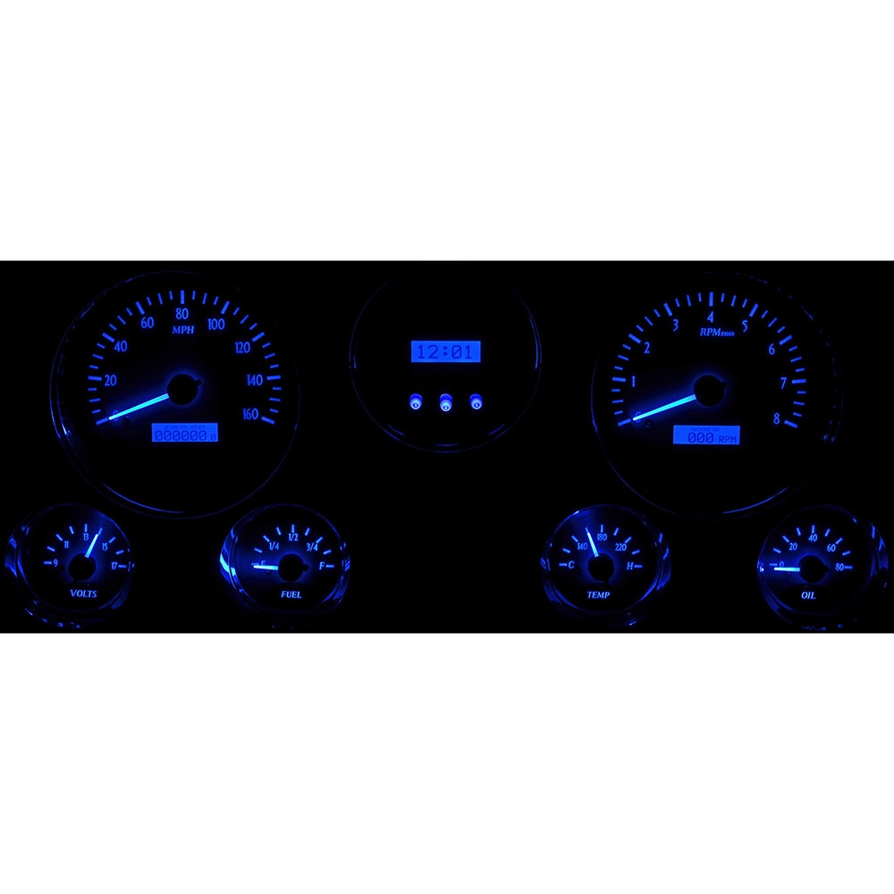 Fully lit needles, backlit faces, and highly visible LCD message centers are a few of the things that you can see which set the VHX Series apart from yesterday’s traditional approach to instrumentation. A few of the features which you don’t normally see are the micro-controlled precision stepper motors, solid state sensors for unparalleled accuracy, and user-customizable display feedback, all supported by an unrivaled limited lifetime warranty which has become the standard for Dakota Digital instrumentation systems . Completely engineered and manufactured at our facility in Sioux Falls, South Dakota, the VHX Series has completely revolutionized the instrumentation industry! This Kit has a Digital clock/ display center.