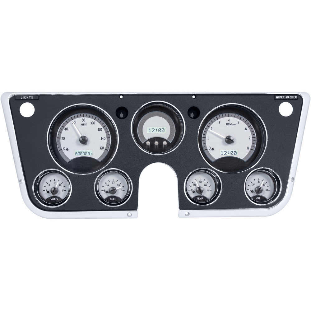 Fully lit needles, backlit faces, and highly visible LCD message centers are a few of the things that you can see which set the VHX Series apart from yesterday’s traditional approach to instrumentation. A few of the features which you don’t normally see are the micro-controlled precision stepper motors, solid state sensors for unparalleled accuracy, and user-customizable display feedback, all supported by an unrivaled limited lifetime warranty which has become the standard for Dakota Digital instrumentation systems . Completely engineered and manufactured at our facility in Sioux Falls, South Dakota, the VHX Series has completely revolutionized the instrumentation industry! This Kit has a Digital clock/ display center.