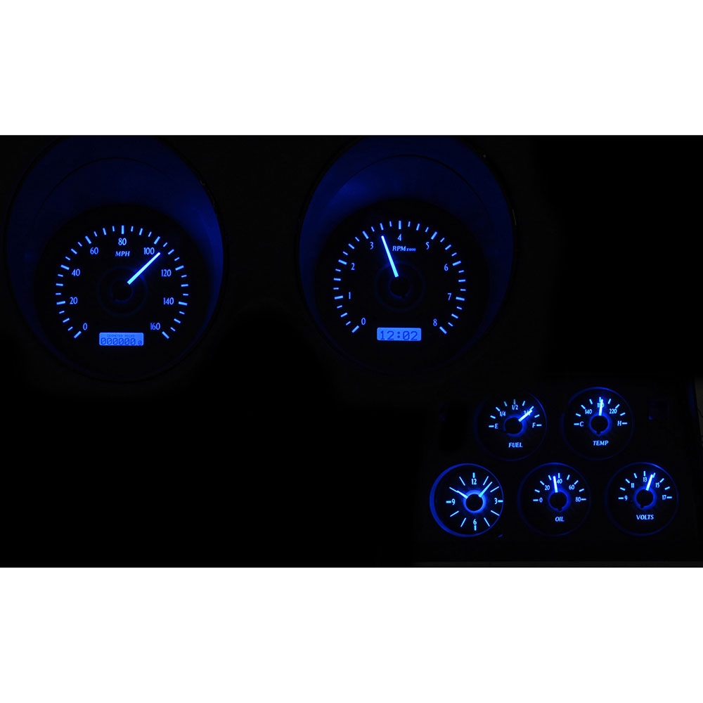 Dakota Digital VHX Systems fit directly into the stock instrument housing of a 1968-77 Chevy CorVTAte without modification, adding a wealth of features to this iconic vehicle. This Kit comes with a analog display clock.