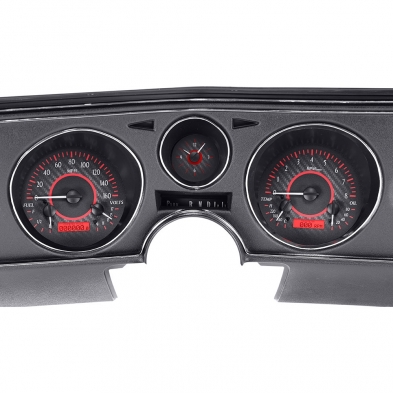 The new VHX Systems fit directly into the stock instrument bezel of a 1969 Chevy Chevelle and El Camino without modification, adding a wealth of features to this iconic vehicle. This Kit comes with a analog clock with needles in The center