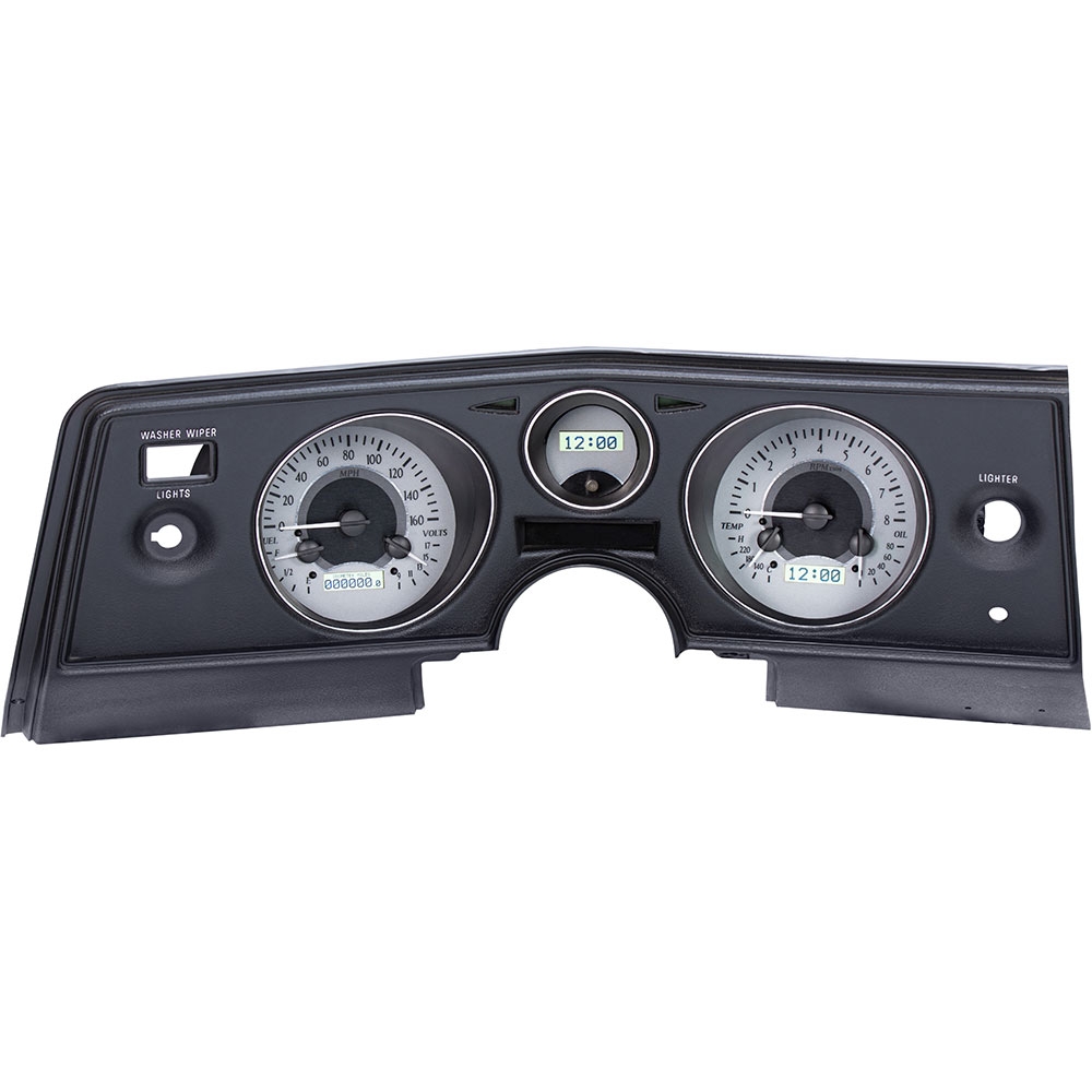 The new VHX Systems fit directly into the stock instrument bezel of a 1969 Chevy Chevelle and El Camino without modification, adding a wealth of features to this iconic vehicle. This Kit comes with a Digital Clock/Display in The center
