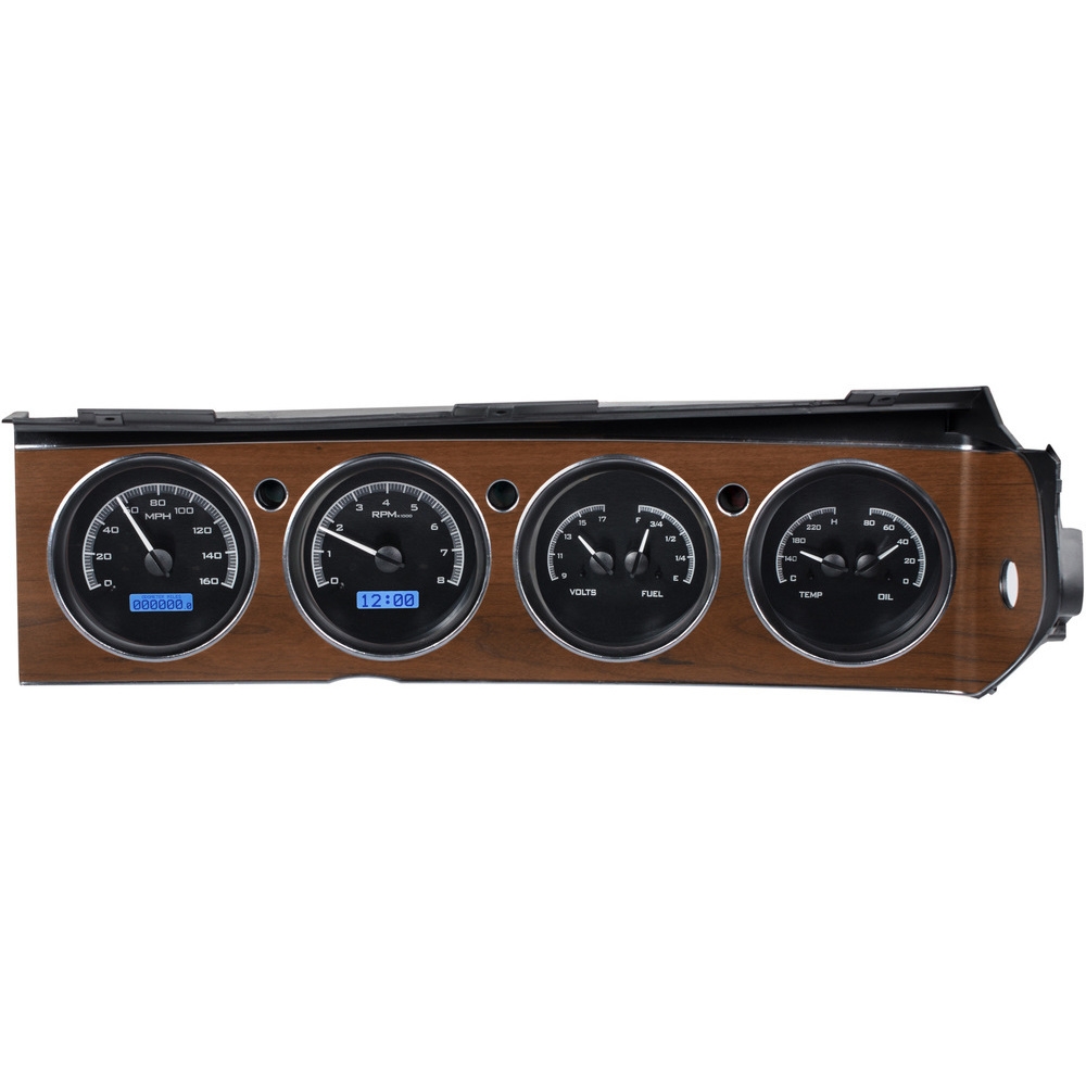 This Dakota Digital VHX gauge kit fits directly into the stock instrument bezel of a 1970-1974 Dodge Challenger and 1970-1974 Plymouth 'Cuda with Rallye dash without modification, adding a wealth of features and information to this iconic vehicle.